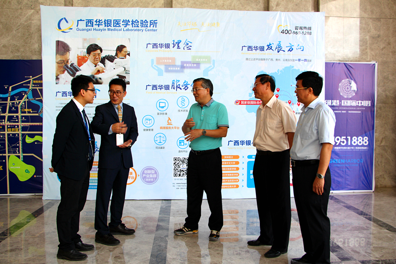 當(dāng)天下午,周紅波一行首先來到位于綠港·國際中心B4棟的廣西華銀醫(yī)學(xué)檢測所,聽取了廣西華銀醫(yī)學(xué)檢測所相關(guān)負(fù)責(zé)人的企業(yè)生產(chǎn)經(jīng)營情況匯報(bào),走訪該所廣西醫(yī)學(xué)檢驗(yàn)中心、廣西轉(zhuǎn)化醫(yī)學(xué)研究中心、東盟國際遠(yuǎn)程病理診斷中心,實(shí)地了解實(shí)驗(yàn)室建設(shè)運(yùn)營情況。廣西華銀醫(yī)學(xué)檢測所于2016年1月進(jìn)駐綠港·國際中心,以4500平米實(shí)驗(yàn)室作為廣西總部基地,業(yè)務(wù)范圍輻射廣西、云南及東盟各國,總投資規(guī)模近1億元,引入全國第一條完整的微生物全自動流水線,建設(shè)了國內(nèi)第一家東盟遠(yuǎn)程病理診斷中心以及全國最大規(guī)模的精準(zhǔn)醫(yī)學(xué)實(shí)驗(yàn)中心。