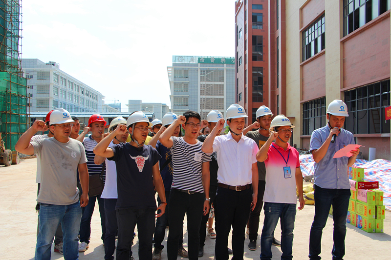 當(dāng)天,驕陽(yáng)似火。綠港集團(tuán)黨委書記、董事長(zhǎng)、總經(jīng)理龔國(guó)強(qiáng)莊重地給黨員們授予“黨員先鋒隊(duì)”紅旗,給青年突擊隊(duì)員們授予“青年突擊隊(duì)”紅旗,并提出了幾點(diǎn)要求:一是要緊緊圍繞項(xiàng)目建設(shè)開(kāi)展突擊活動(dòng)。全體黨員干部和青年同志要充分發(fā)揚(yáng)不怕吃苦、勇于負(fù)重,敢打硬仗、能打硬仗的優(yōu)良傳統(tǒng),切實(shí)發(fā)揮“黨員先鋒隊(duì)”、“青年突擊隊(duì)”在“急、難、險(xiǎn)、重”任務(wù)中的生力軍作用。二是要把項(xiàng)目建設(shè)與錘煉黨員意志相結(jié)合。黨員干部和青年同志們要充分發(fā)揮模范帶頭作用,深入項(xiàng)目一線,了解項(xiàng)目建設(shè)困難,想方設(shè)法協(xié)調(diào)解決。要在項(xiàng)目建設(shè)中增強(qiáng)本領(lǐng)、錘煉意志、增強(qiáng)黨性,更好的服務(wù)入?yún)^(qū)企業(yè)建設(shè)發(fā)展。三是要充分發(fā)揮“黨建帶團(tuán)建”作用?!包h員先鋒隊(duì)”要引導(dǎo)和指導(dǎo)好“青年突擊隊(duì)”開(kāi)展好項(xiàng)目建設(shè),黨員干部與青年同志們要相互關(guān)心,密切配合,充分發(fā)揮整體功能和團(tuán)隊(duì)精神,確保瑞聲廠房項(xiàng)目能在6月25日完工交付9號(hào)廠房、7月25日完工交付3、13號(hào)廠房的任務(wù)目標(biāo)。
