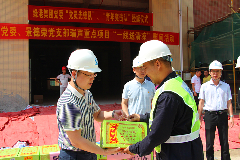 此次活動(dòng)也是綠港集團(tuán)黨委在今年開(kāi)展“四個(gè)一線”爭(zhēng)先鋒、創(chuàng)建黨建示范品牌工作以來(lái),在項(xiàng)目建設(shè)一線開(kāi)展創(chuàng)建“黨員攻堅(jiān)先鋒隊(duì)”活動(dòng)的重要舉措之一?!八膫€(gè)一線”是綠港集團(tuán)黨委圍繞經(jīng)開(kāi)區(qū)黨工委加強(qiáng)基層黨建三年行動(dòng)計(jì)劃,結(jié)合集團(tuán)公司項(xiàng)目建設(shè)、企業(yè)服務(wù)、招商銷售、項(xiàng)目融資的四個(gè)任務(wù),以“抓黨建促發(fā)展,抓品牌促提升”為主題,組織號(hào)召?gòu)V大黨團(tuán)員積極開(kāi)展在項(xiàng)目一線創(chuàng)建“黨員攻堅(jiān)先鋒隊(duì)”、在服務(wù)企業(yè)一線創(chuàng)建“服務(wù)示范標(biāo)兵(窗口)”、在招商銷售一線創(chuàng)建“一個(gè)黨員一面旗,我為綠港做代言”、在項(xiàng)目融資一線“爭(zhēng)做黨員領(lǐng)頭雁”的活動(dòng)。活動(dòng)開(kāi)展以來(lái),集團(tuán)黨建真正實(shí)現(xiàn)了“走前頭、作表率”的目標(biāo),引導(dǎo)集團(tuán)公司全體黨員干部轉(zhuǎn)變工作作風(fēng)、提高工作效能、強(qiáng)化服務(wù)意識(shí),在促進(jìn)綠港集團(tuán)樹(shù)立國(guó)企黨建標(biāo)桿,不斷提升社會(huì)形象起到引領(lǐng)作用。授旗儀式結(jié)束后,綠港集團(tuán)與會(huì)領(lǐng)導(dǎo)還給項(xiàng)目一線參建人員送上了王老吉、西瓜水果等清涼慰問(wèn)品,鼓勵(lì)他們繼續(xù)發(fā)揚(yáng)綠港鐵軍精神,急難險(xiǎn)重顯身手,同時(shí)要注意防暑降溫、保重身體,更好地為項(xiàng)目建設(shè)做貢獻(xiàn)。(綠港集團(tuán) 陽(yáng)正輝、張彩秀/文、圖)