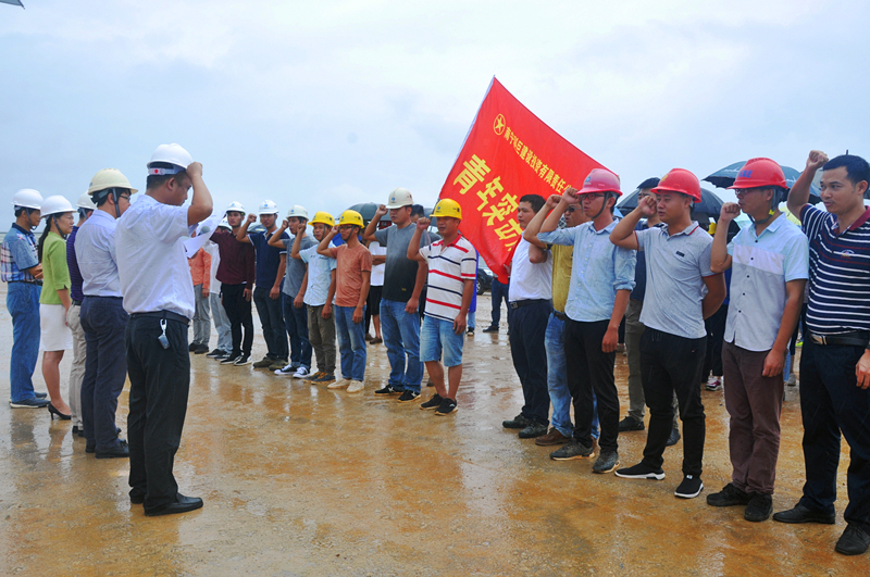 當(dāng)天,細(xì)雨蒙蒙,綠港集團(tuán)黨委書記、董事長、總經(jīng)理龔國強(qiáng)在項(xiàng)目現(xiàn)場給參建黨員授予了“黨員先鋒隊(duì)”旗幟,給參建團(tuán)員青年授予了“青年突擊隊(duì)”旗幟,綠港集團(tuán)副總經(jīng)理、工會主席黃麗琴給吳圩空港經(jīng)濟(jì)區(qū)重點(diǎn)項(xiàng)目推進(jìn)組授予了“工人先鋒號”錦旗,激勵廣大黨員干部青年同志們要以強(qiáng)烈的政治責(zé)任感、立足本職崗位,充分發(fā)揚(yáng)不怕吃苦、勇于負(fù)重,敢打硬仗、能打硬仗的“綠港鐵軍”優(yōu)良傳統(tǒng),為吳圩空港經(jīng)濟(jì)區(qū)項(xiàng)目建設(shè)做貢獻(xiàn)。