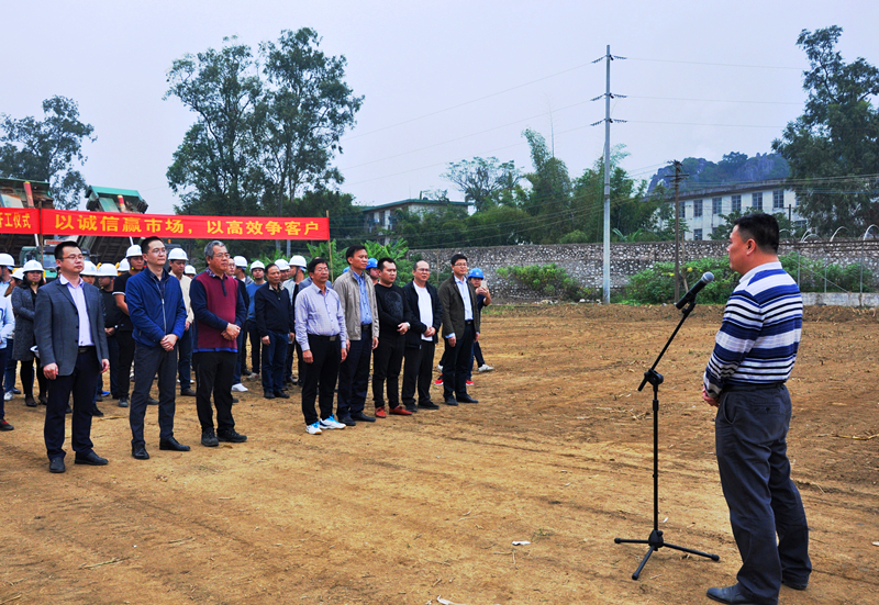 現(xiàn)場會(huì)上,綠港集團(tuán)集董事長、總經(jīng)理龔國強(qiáng)對蒞臨指導(dǎo)的各位領(lǐng)導(dǎo)表示熱烈歡迎。他表示,由綠港集團(tuán)投資建設(shè)的南寧經(jīng)濟(jì)技術(shù)開發(fā)區(qū)吳圩鎮(zhèn)玉米研究所耕地提質(zhì)改造(旱改水)項(xiàng)目,歷經(jīng)9個(gè)月的前期準(zhǔn)備工作后得以勝利開工建設(shè),與經(jīng)開區(qū)管委會(huì)、市國土資源局的正確領(lǐng)導(dǎo)和精心指導(dǎo)以及廣西農(nóng)科院、吳圩鎮(zhèn)人民政府等單位的大力支持是分不開的。他指出,南寧經(jīng)濟(jì)技術(shù)開發(fā)區(qū)吳圩鎮(zhèn)玉米研究所耕地提質(zhì)改造(旱改水)項(xiàng)目是在貫徹落實(shí)中央“占優(yōu)補(bǔ)優(yōu)、占水田補(bǔ)水田”精神,確保新增建設(shè)用地項(xiàng)目的占補(bǔ)平衡的大背景下實(shí)施的,旨在大力推進(jìn)耕地質(zhì)量等級提升,為推進(jìn)南寧空港經(jīng)濟(jì)區(qū)基礎(chǔ)設(shè)施建設(shè),確保經(jīng)開區(qū)耕地質(zhì)量等級提升及儲(chǔ)備更多的建設(shè)用地指標(biāo)。各參建單位要嚴(yán)格控制工程質(zhì)量,確保各項(xiàng)指標(biāo)達(dá)到設(shè)計(jì)要求,同時(shí)要加強(qiáng)管理,科學(xué)組織,保質(zhì)保量保安全,按期完成工程建設(shè)任務(wù)。此次玉米研究所耕地提質(zhì)改造(旱改水)項(xiàng)目的開工建設(shè)僅僅是綠港集團(tuán)“旱改水”項(xiàng)目建設(shè)邁出的第一步,今后,綠港集團(tuán)將繼續(xù)建設(shè)開發(fā)更多的“旱改水”項(xiàng)目,為經(jīng)開區(qū)及吳圩空港區(qū)經(jīng)濟(jì)發(fā)展、鄉(xiāng)村振興做出更大貢獻(xiàn)。
