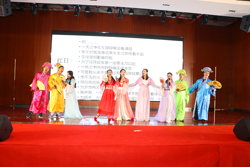 隨后,來自集團(tuán)工程管理部林重胤以及嘉通公司潘青青甜蜜獻(xiàn)唱《告白氣球》,讓大家感受到了愛情的絲絲美好。嘉通公司的《夸夸咱公司》,用三句半的表演形式唱出了綠港集團(tuán)濃濃的企業(yè)文化情愫,也展現(xiàn)了綠港員工積極、拼搏、向上的精神?!段乙鼐G港》、《聲臨其境》、《好運(yùn)來》、《愛》、《好嗨喲》等多個(gè)節(jié)目在觀眾的熱情掌聲中聯(lián)袂奉上一場(chǎng)精彩演出,整個(gè)活動(dòng)歌聲笑聲、熱烈的掌聲匯成了歡樂的海洋。集團(tuán)營(yíng)銷管理中心的《四小天王齊賀歲》以及集團(tuán)計(jì)劃運(yùn)營(yíng)部、紀(jì)檢監(jiān)察審計(jì)部、安全監(jiān)督部聯(lián)合帶來的《蒙面唱將猜猜猜》將活動(dòng)推向高潮,現(xiàn)場(chǎng)掌聲不斷。快板《綠港贊歌》道出了綠港集團(tuán)成立五載,綠港人用智慧和汗水所取得的成效。最后,集團(tuán)領(lǐng)導(dǎo)班子壓軸出場(chǎng),帶來詩(shī)歌朗誦《相信未來》,贏得陣陣掌聲,讓大家堅(jiān)定了信心、鼓足了干勁,對(duì)美好生活更加熱愛和向往。