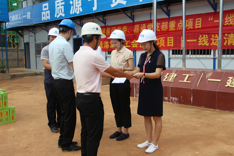 7月4日一早,集團慰問工作小組在集團公司副總經(jīng)理陸羿冰、黃克和集團副總經(jīng)理、工會主席黃麗琴的率領(lǐng)下,來到了吳圩鎮(zhèn)“綠港·云海灣”項目工地。綠港?云海灣項目由嘉通公司重點打造的開發(fā)建設(shè)高端住宅社區(qū),項目位于吳圩空港經(jīng)濟區(qū)的核心位置,項目總投資額3.8億元,于今年3月正式啟動。目前,項目商業(yè)區(qū)已開展基礎(chǔ)施工,別墅區(qū)一期施工6棟已結(jié)構(gòu)封頂,小高層區(qū)正在進行土方開挖工作。